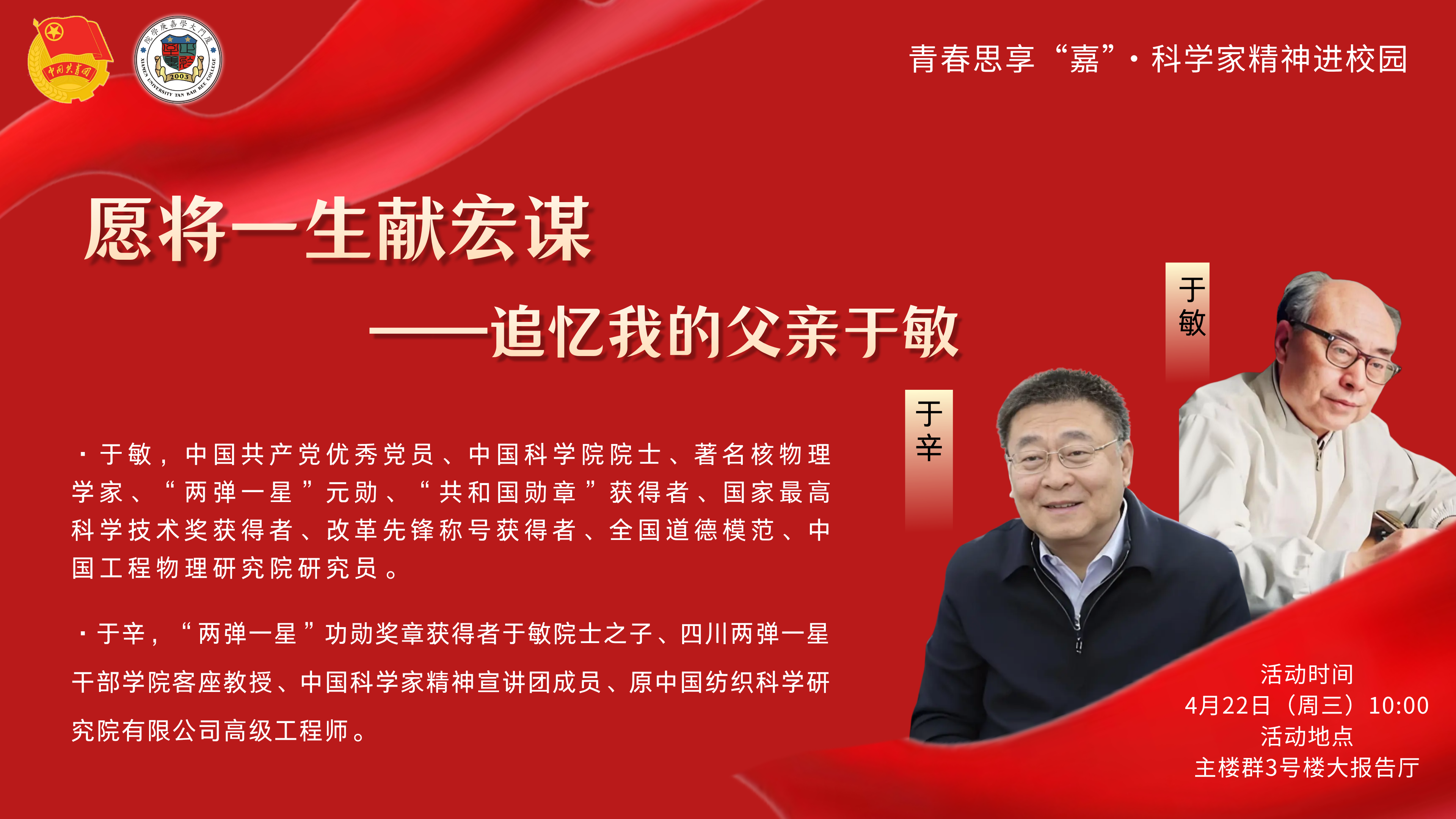 青春思享“嘉”·科学家精神进校园活动之“愿将一生献宏谋——追忆我的父亲于敏”主题讲座